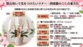 一方で、サロンやショップなど、やわらかく華やかな雰囲気に合わせたい場合はピンク系も人気があります。ただし、相手先の内装やブランドイメージとの相性もあるため、落ち着いた印象を重視するなら白を中心に考えるとまとまりやすいです。